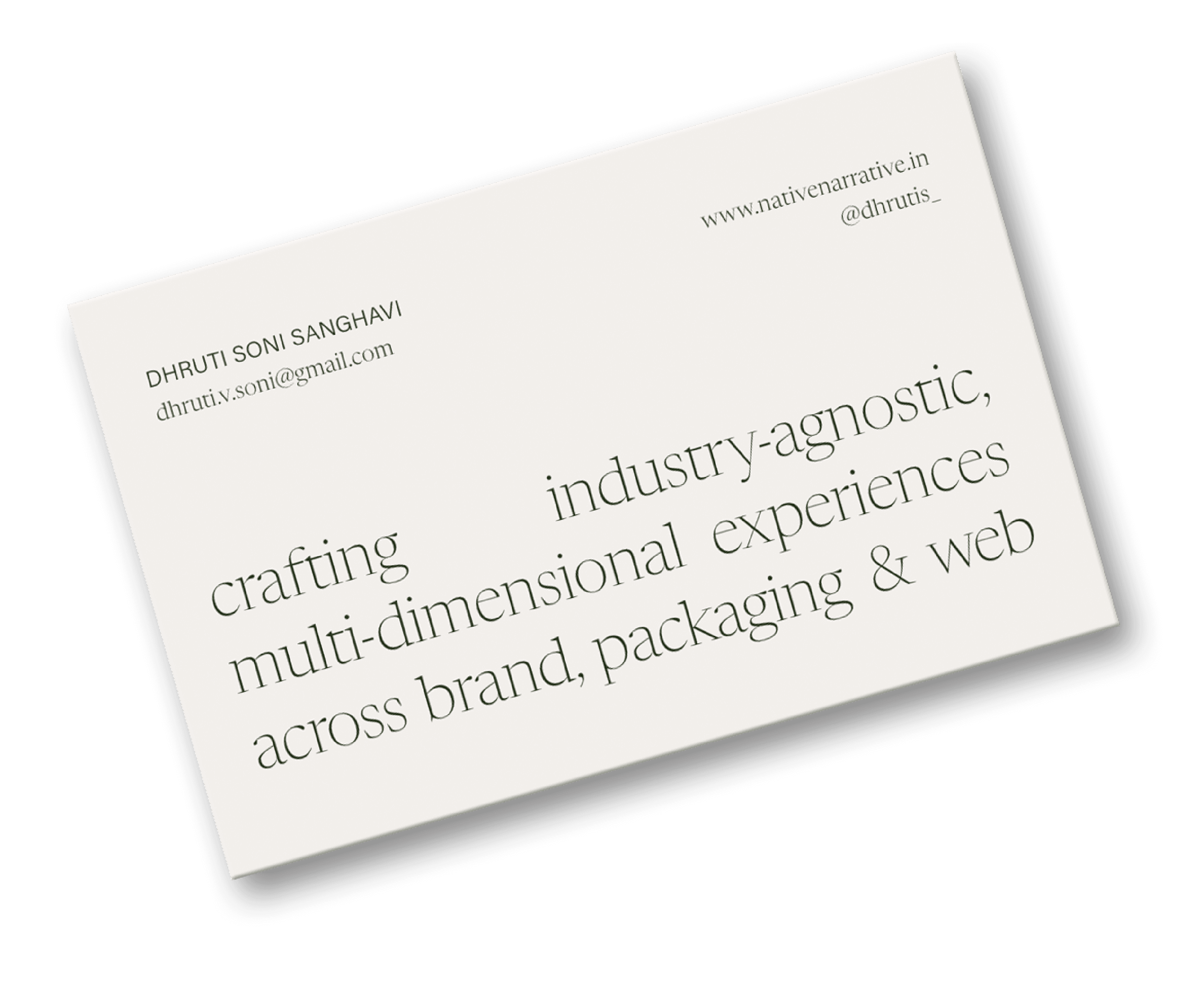 Dhruti is an Independent creative consultant working across mediums with a laser focus on translating narratives into visual experiences that captivate and resonate.